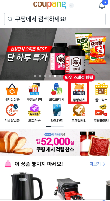 - 대상: 쿠팡 와우 멤버십 회원(월 이용료 4,990원)